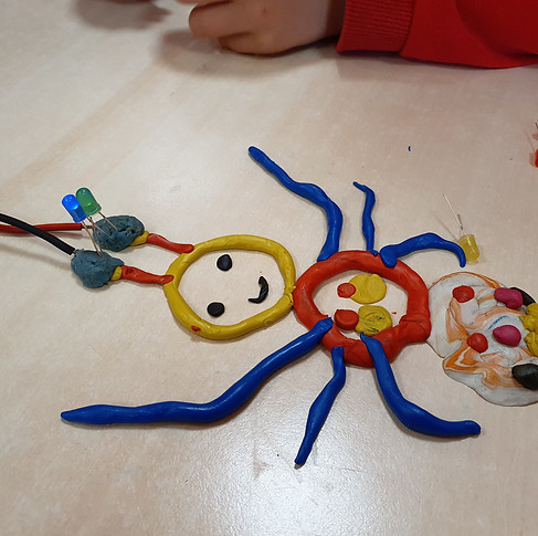 Utilizando materiais de desperdício montamos o corpo da nossa máquina de rabiscos, juntando canetas, lápis ou giz, para que consiga desenhar e, por último, damos-lhe vida com um circuito elétrico e motor! Que obra de arte sairá daqui?